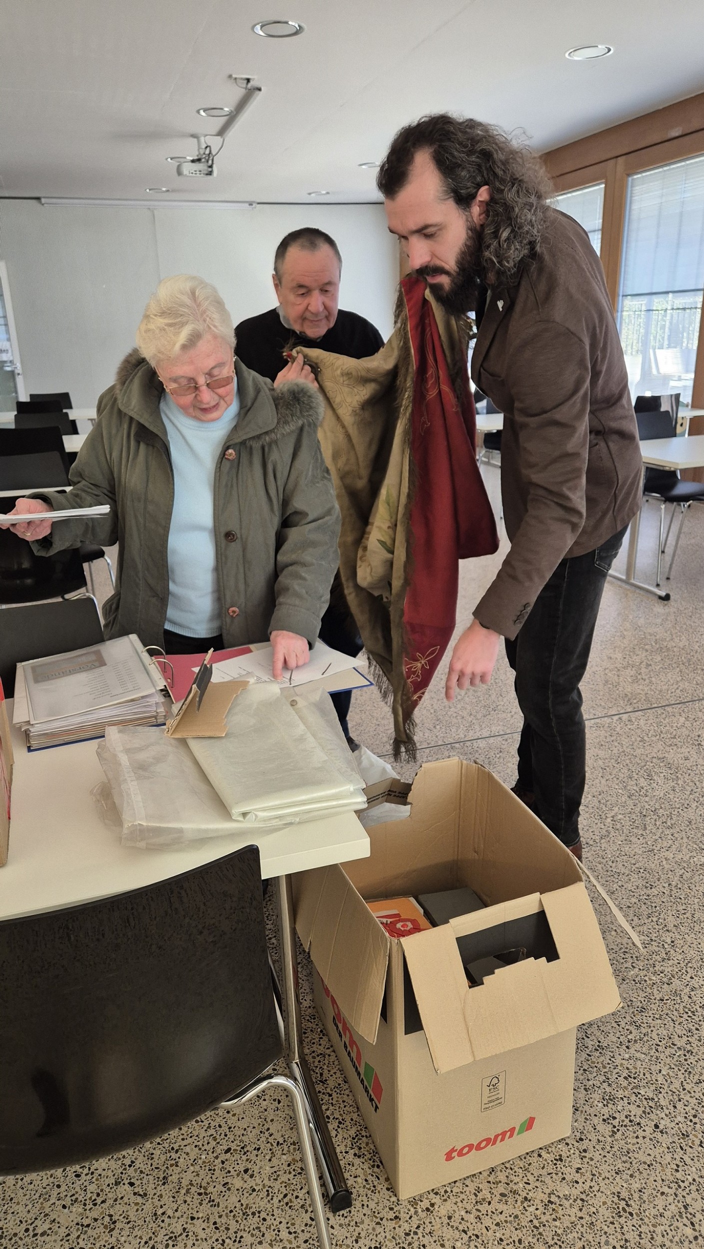 Fahnen, Noten Bilder und noch viele andere Erinnerungsstücke brachten Isolde Mundl und Peter Schuler am morgen des 20.01.2025 ins Rathaus. Der Traditionsverein wurde aufgelöst und so musste ein Platz gefunden werden, wo die alten Stücke aufbewahrt werden konnten. Die historische Fahne aus 1876 wurde dabei genauso übergeben, wie Fotoalben, Protokollbücher und Videokassetten. Diese Dinge werden zunächst eingelagert und sollen nach und nach, zumindest wo es sich eben machen lässt, auch digitalisiert werden. Einige der Bilder werden Sie künftig sicherlich im historischen Bilderarchiv auf der Internetseite der Gemeinde finden.