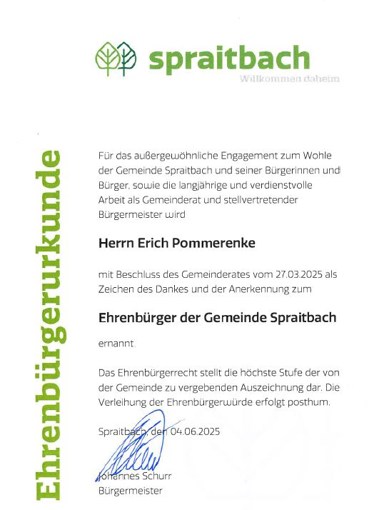 https://www.spraitbach.de/neuigkeiten/erich-pommerenke-wird-posthum-zum-4-ehrenbuerger-ernannt.html