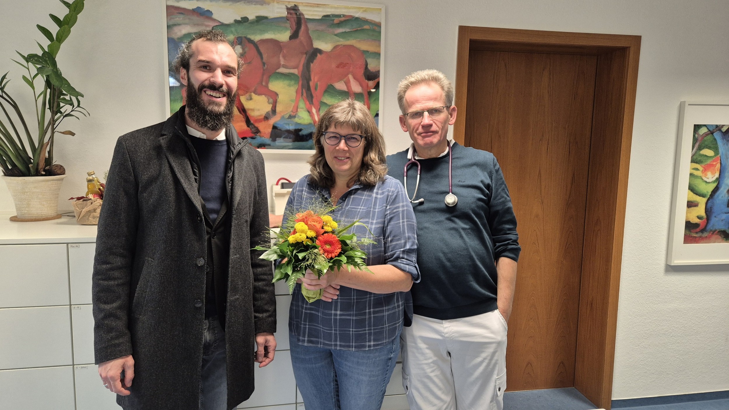 Frau Dr. Schlipf ist seit vielen Jahren eine angesehene Kinderärztin. Um nun in die Praxis ihres Mannes Herrn Dr. Knaus voll einsteigen zu können hat sie die Ausbildung zur Allgemeinmedizinerin oberdrauf gepackt. Damit steigt auch die Kapazität der behandelbaren Patienten. Folgerichtig bekommt die Praxis nun auch einen neuen Namen und ist künftig unter Familienpraxis Spraitbach zu finden. Zu diesem Schritt und Erfolg war Bürgermeister Johannes Schurr vor Ort und gratulierte den beiden und ihrem Team. Miteingeschlossen natürlich auch der Dank, sich in diesem Maß für Spraitbach zu engagieren.
