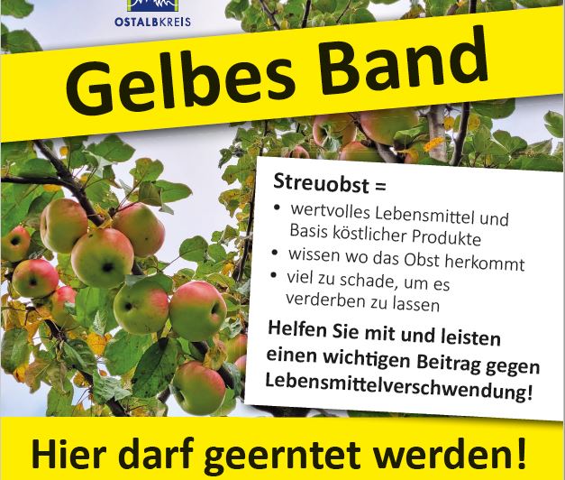 Auch in diesem Jahr beteiligt sich unsere Gemeinde an der Aktion „Gelbes Band – Pflücken erlaubt!“, die zum verantwortungsvollen Umgang mit Lebensmitteln und zur Vermeidung von Obstverschwendung beiträgt.