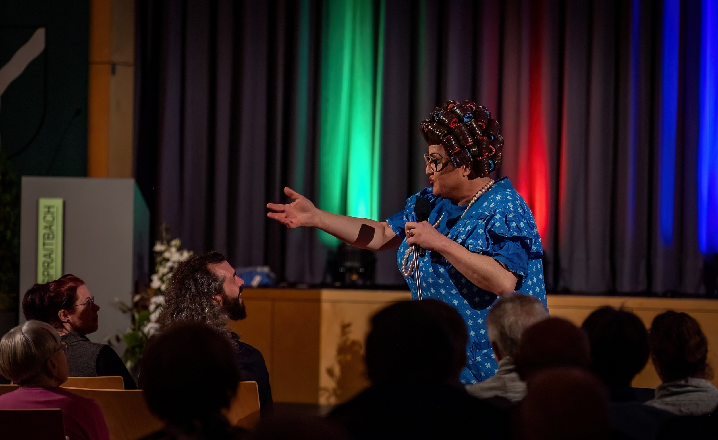Anschließend wurden die Anwesenden von „Elfriede Scheufele“ in einen schwäbischen Humorabend entführt. Als „klassische Hausfrau“ verkleidet spielte sie mit vielen Klischees, was von schallendem Gelächter begleitet wurde. Gemeinsames Lachen tut gut und verbindet – das war spürbar.