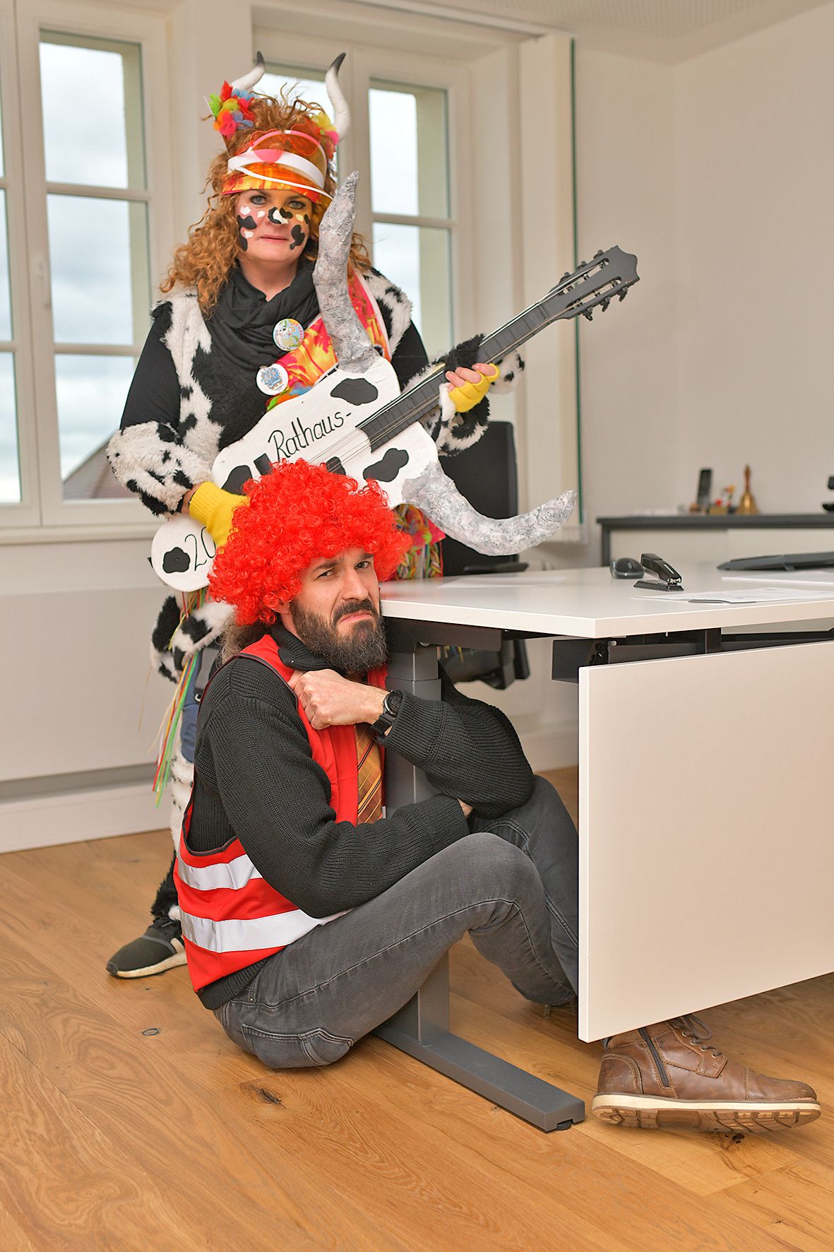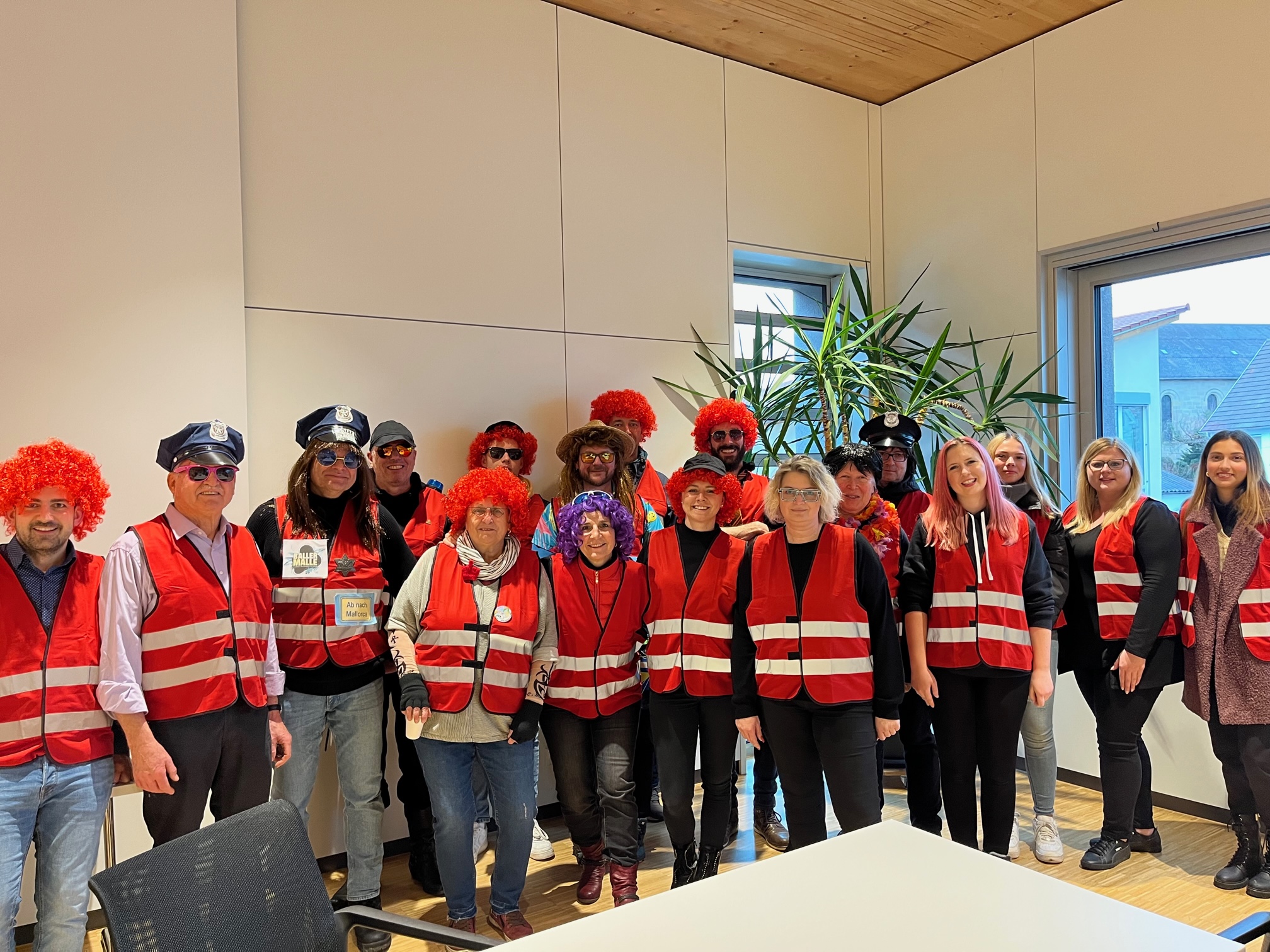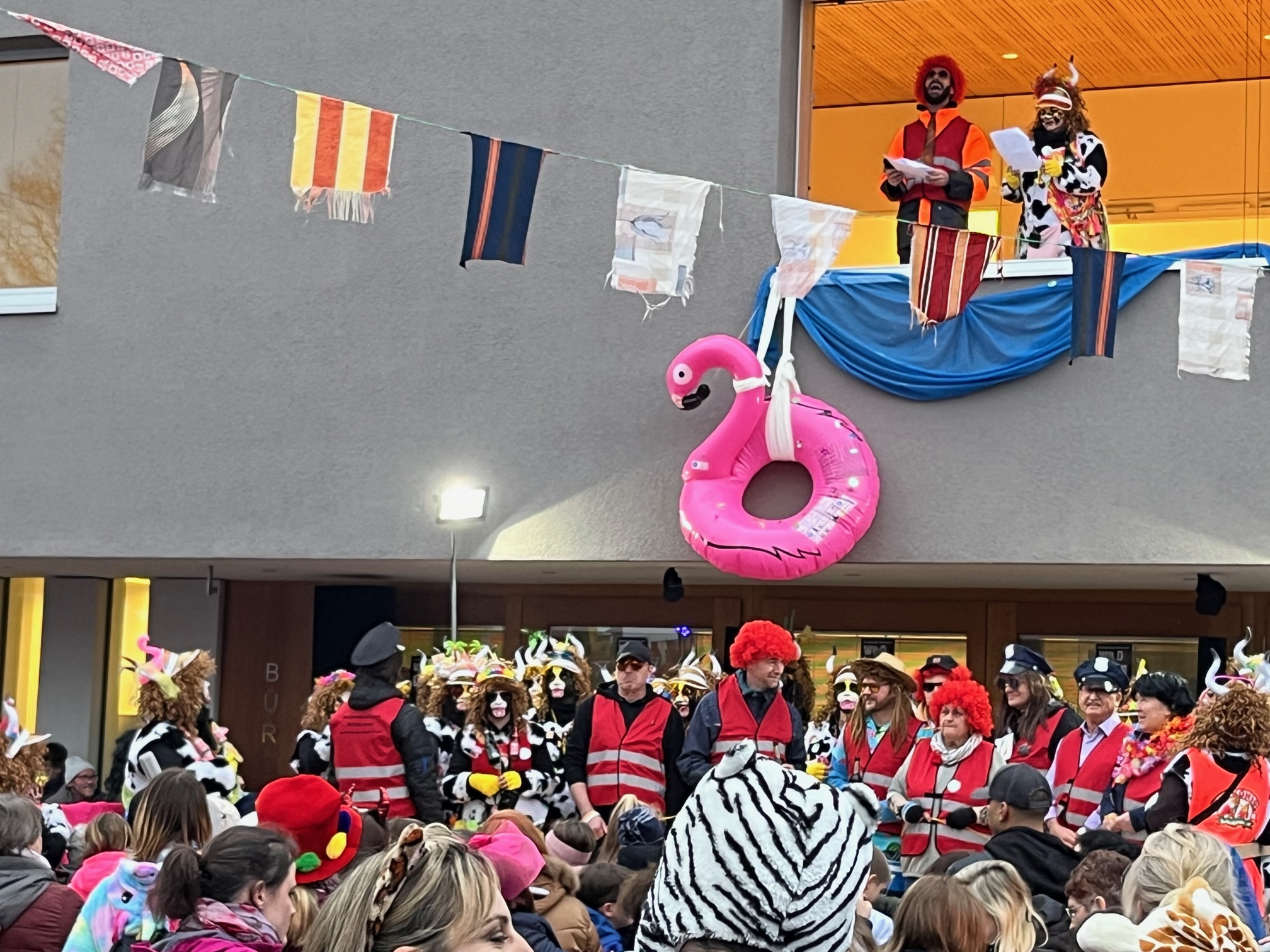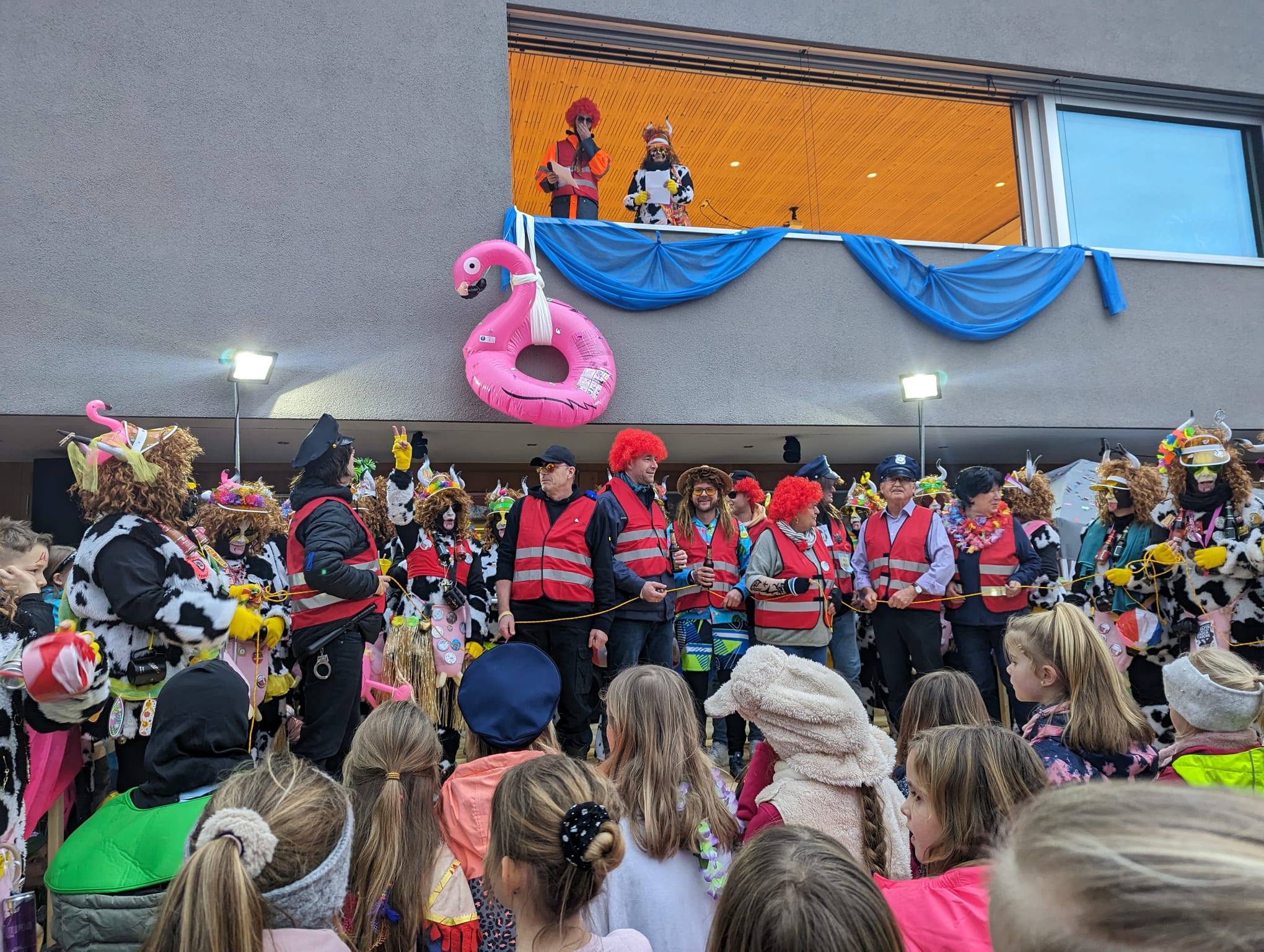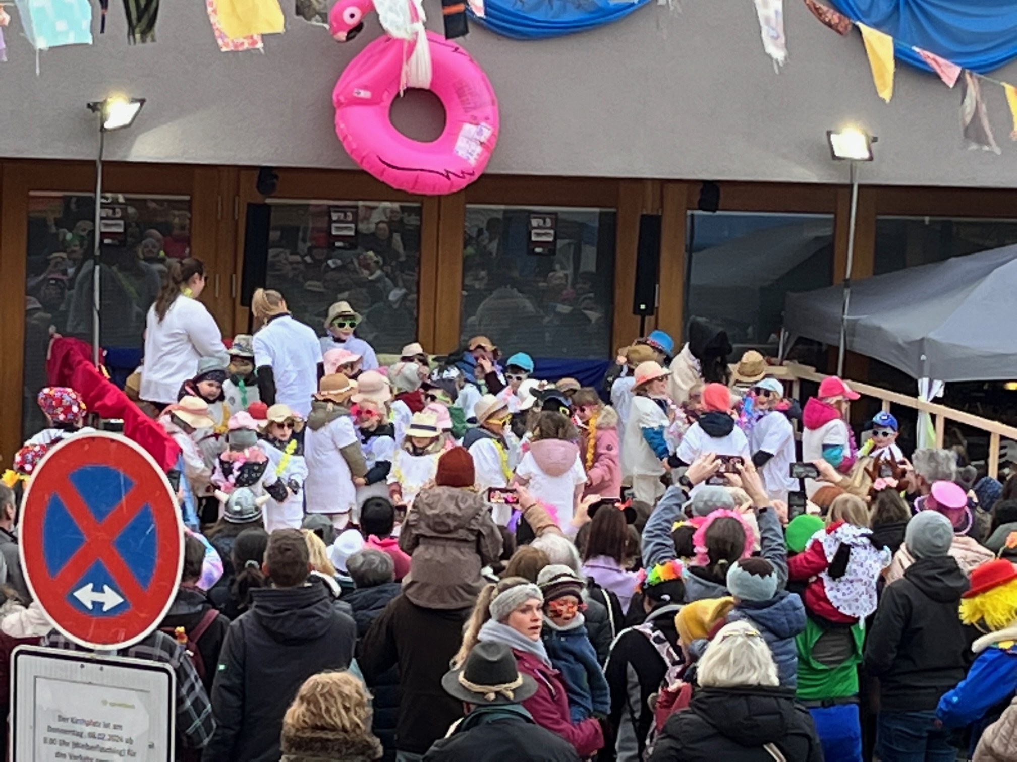Wunderbar närrisch ging es am Weiberfasching im Rathaus zu. Mit dem Fliegerlied marschierten fast 60 Kinder des Kindergarten Wirbelwinds und des NaturKita Bucheckerle auf die Bühne und begeisterten mit Malle-Klängen die zahlreichen Zuschauer. Unter dem Motto Sonne, Sand und Meer/mehr stürmten die Landeier mit Xandra Bauer als Oberhaupt das Rathaus. Auch die zahlreichen Gemeinderäte und Rathausbedienstete als Ballermann Ordnungsdienst konnten den Schultes nicht retten und er musste der Oberkuh und seinen Wählern Rede und Antwort stehen. Der Kuhtanz mit dem Lied: „Die Kuh hat keine Bremse“ formierte sich zu einer riesenlangen Polonaise, die den ganzen Kirchplatz einnahm. Die Rock´nRoll Gruppe der Grundschule mit Frau Arnet und auch die 3. und 4. Klässler der Grundschule Spraitbach heizten die gute Stimmung mit Jambo Mambo und Disco Kids weiter an. Ein weiterer Höhepunkt war der Auftritt der Wexheainer Wefzga Narrenzunft und natürlich die lautstarke Musik der Gmender Gassafetza. Dazwischen und am Schluss sorgte DJ Lacky für ausgelassene Stimmung.